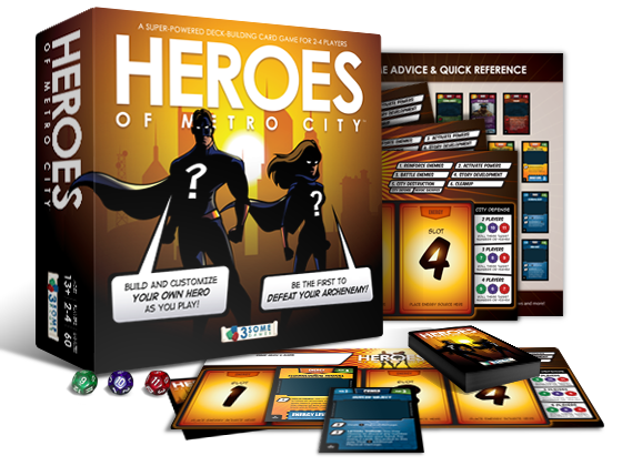 Heroes of Metro City is the only cooperative deckbuilding game where you create your own unique super-powered hero. Choose your powers. Choose your origin story. Assemble a team. Defeat the evil Minions, Villains, and Archenemies to Save Metro City!